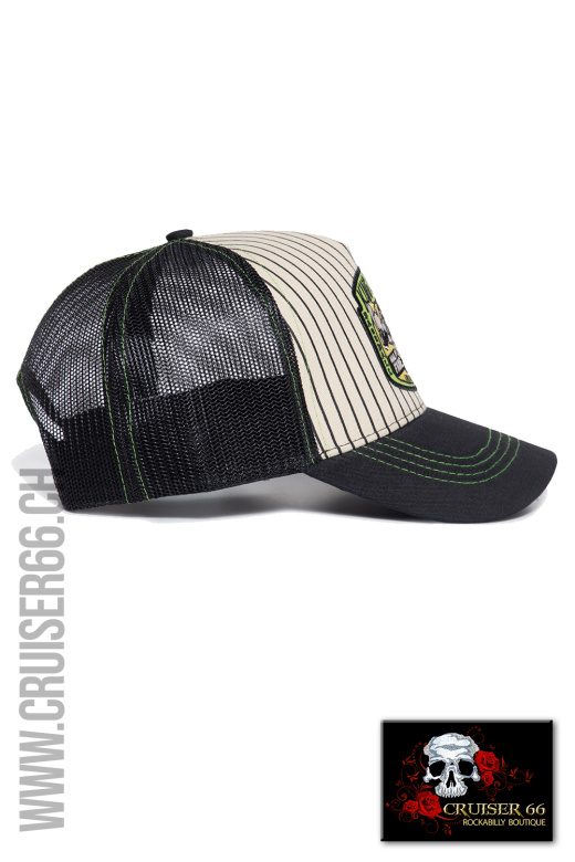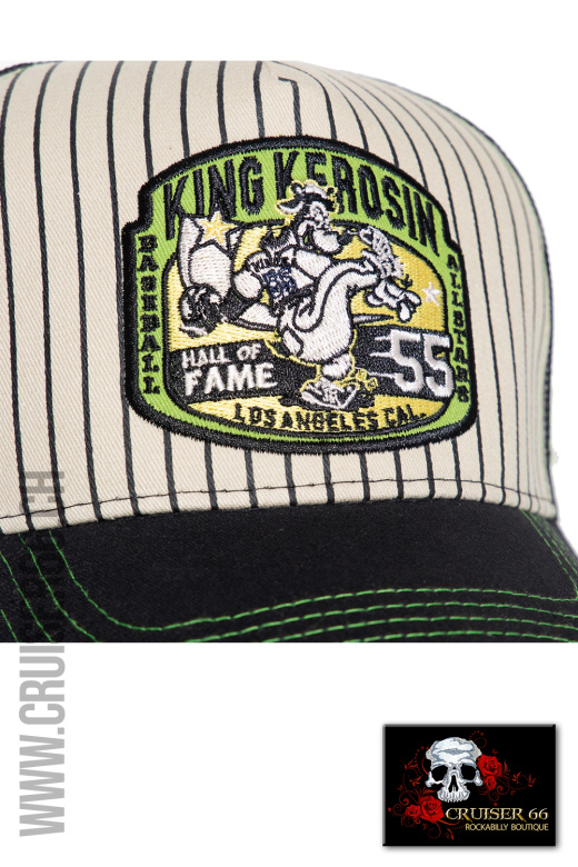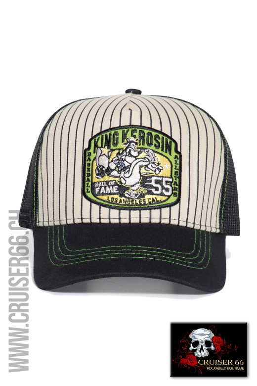 Für einen Hingucker sorgt diese Trucker Cap von King Kerosin mit dem außergewöhnlich schönem Retro-Design. Der Blickfang ist die hochwertige Stickerei auf der kontrastierenden gestreiften Front.