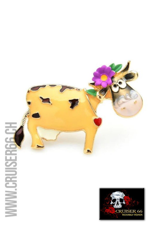 Herzige Kuh mit Blume im Haar. Bringt Witz und Pepp auf jedes Revers.