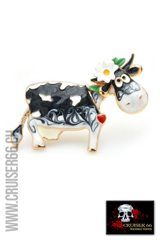 Herzige Kuh mit Blume im Haar. Bringt Witz und Pepp auf jedes Revers.