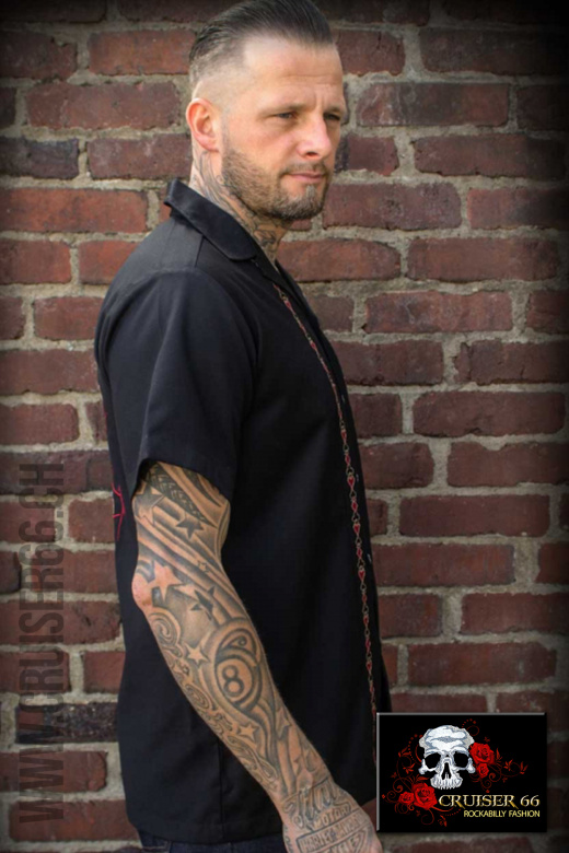Durch die Farbkombi und die Stickereien sorgt dieses coole Vintage Hemd für einen großartigen Rockabilly Look. Der stilsichere Auftritt ist somit gesichert - ganz egal, ob einzeln an der Bar oder unterwegs mit den Jungs vom Club oder der Band.