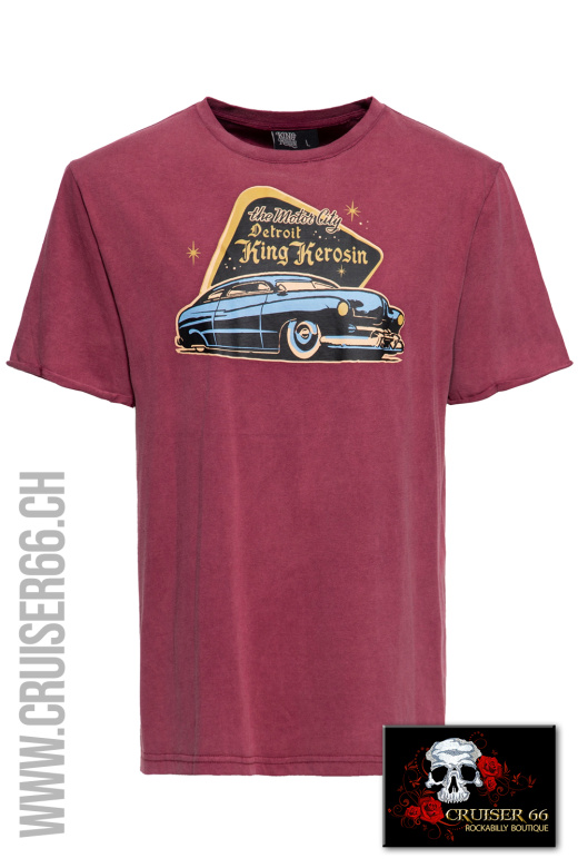 Das neue King Kerosin Oil-Wash T-Shirt entführt dich in die pulsierende Welt der 50er Jahre, wo Greaser die Straßen beherrschten. Mit einem stimmungsvollen Print eines Kultautos der 50er erweckt dieses Shirt ein Gefühl der Nostalgie und des Retro-Charmes.