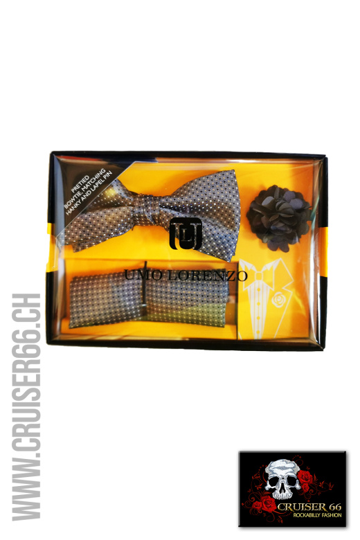 Set mit Fliege, Tuch und Blumenpin