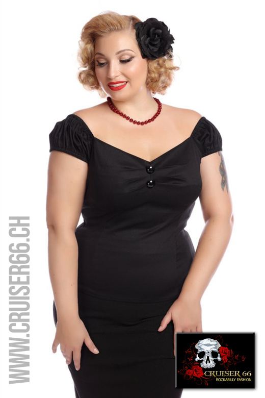 Die pflegeleichten Tops von Collectif im Retro-Style passen zum Rock und auch zur Jeans.