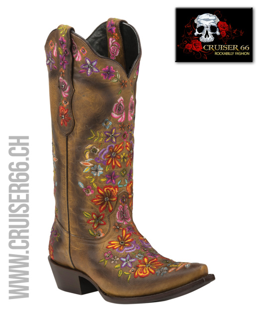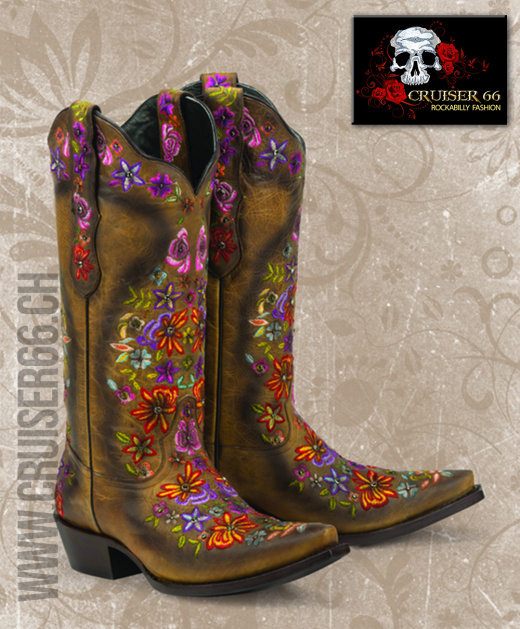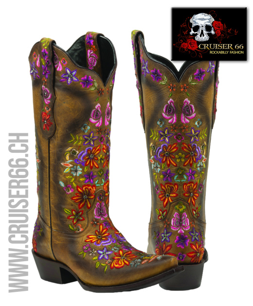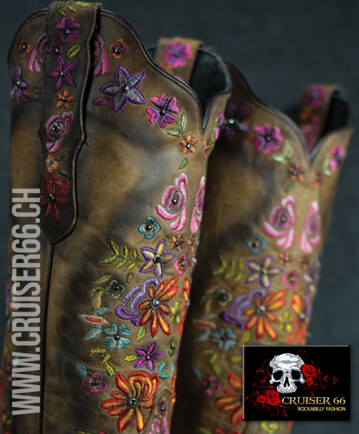 Auffallende exklusive Stickereien zeichnen diese handgefertigten Stiefel aus und die Akzente aus zertifizierten SWAROVSKI® Kristallen machen sie zu einem interessanten und glänzenden Anziehungspunkt.